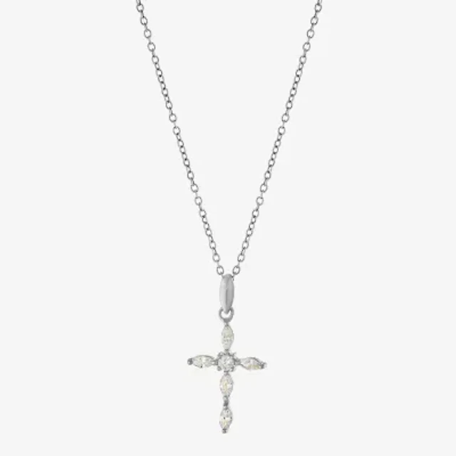 Silver Treasures Womens Cubic Zirconia Sterling Silver Cross 18 Inch Pendant Necklace