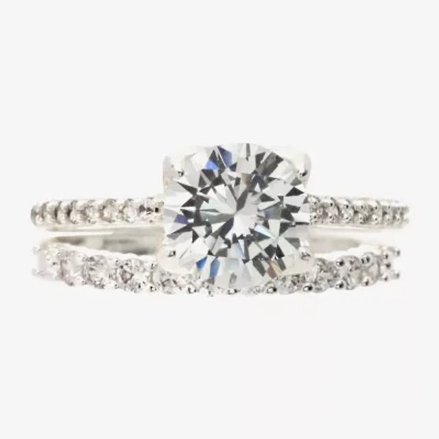 Sparkle Allure Womens Cubic Zirconia Pure Silver Over Brass Round Solitaire Bridal Set