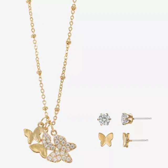 Sparkle Allure Womens Cubic Zirconia 14K Gold Over Brass Butterfly -pc. Jewelry Set