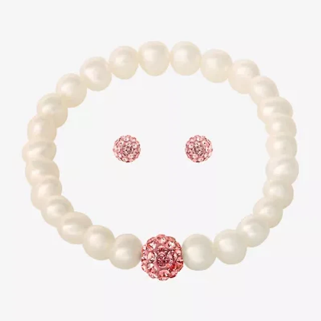 Girls Pink Crystal Cultured Freshwater Pearl 14K Gold 2-pc. Jewelry Set