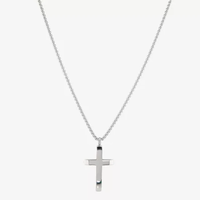 Yes, Please! Womens Lab Created White Sapphire Sterling Silver Cross 18 Inch Pendant Necklace