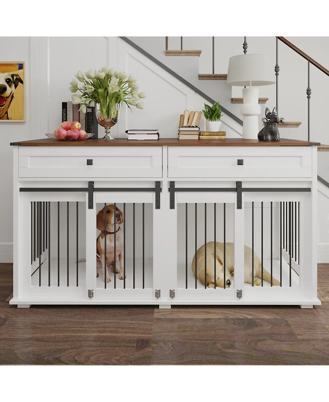 Streamdale Furniture 63" Double Dog Crate Furniture with Drawers & Divider