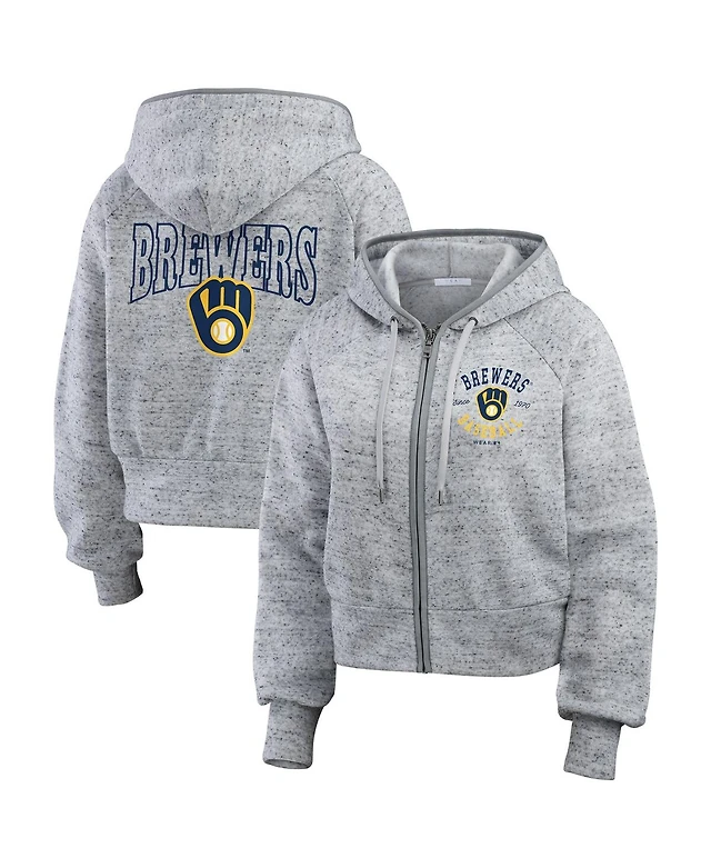 Wear by Erin Andrews Women's Heather Gray Milwaukee Brewers Speckled Fleece Cropped Full-Zip Hoodie