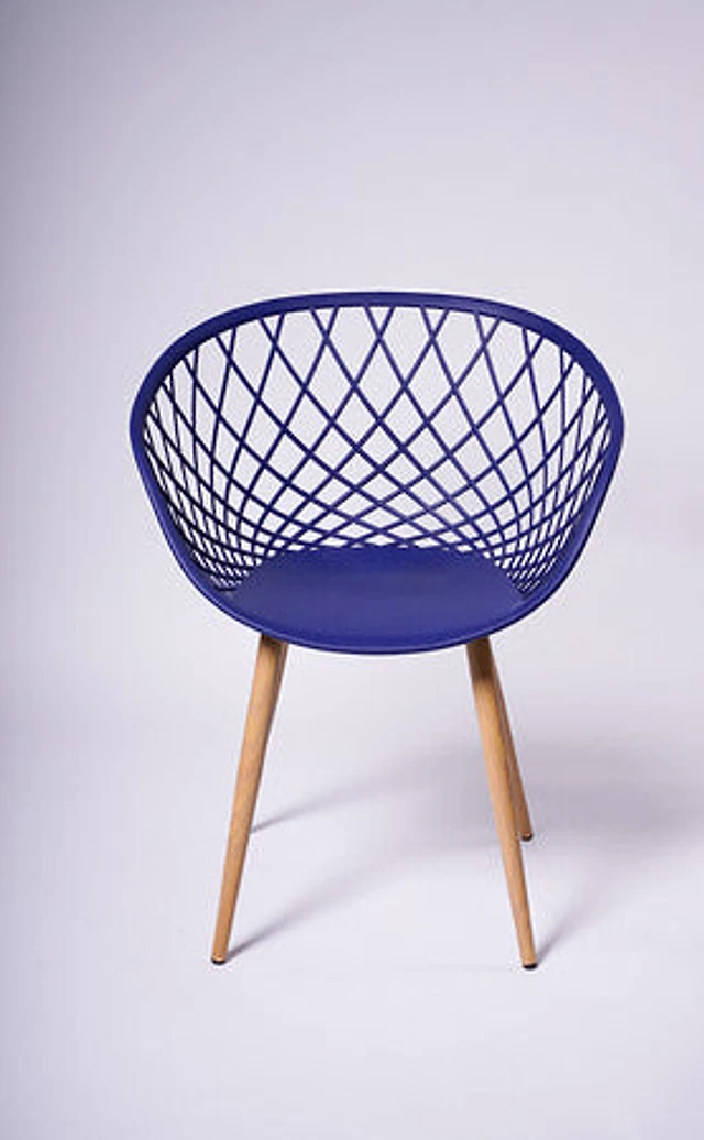LeisureMod Dining Chair with White Powder Coated Steel Legs and Wicker Back, Set of 2