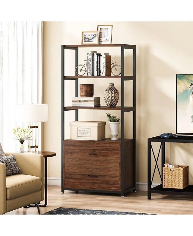 Tribesigns Oval Bookshelf, Triple Wide 5 Tier Etagere Bookcase, Industrial Display Shelves for Living Room (Brown, 55")