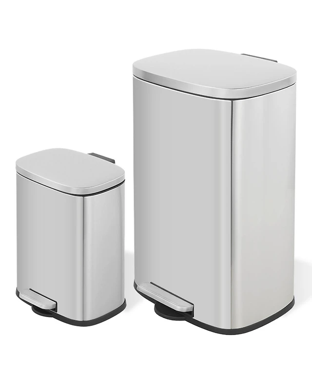 8 Gal./30 Liter and 1.3 Gal./5 Liter Stainless Steel Step-on Trash Can Set for Kitchen and Bathroom