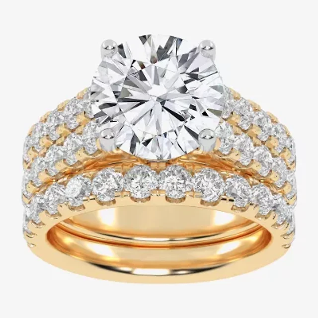 (G / Si1-Si2) Womens 4 CT. T.W. Lab Grown White Diamond 10K Gold Round Side Stone Halo Bridal Set