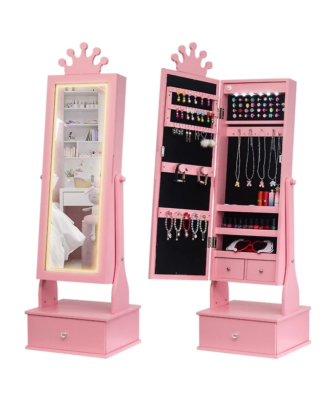homfan Freestanding Jewelry Armoire Cabinet - Full-Length Mirror with Led Light Vanity Storage Organizer 3 Drawers Girls' Dress Up Gift