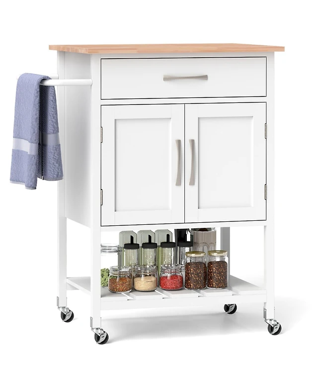 Rolling Kitchen Island Cart with Drawer and Towel Rack – Mobile Kitchen Storage and Prep Cart with Towel Holder