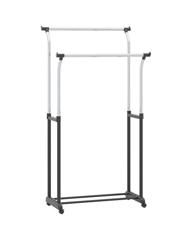 Slickblue Industrial Style Clothes Garment Rack on Wheels, Double Hanging Rod Metal Clothing Rack