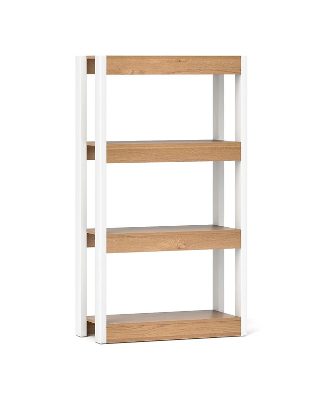 Depot E-Shop Vinton 4-Tier Bookcase with Modern Storage for Books and Decor, Natural Oak / White