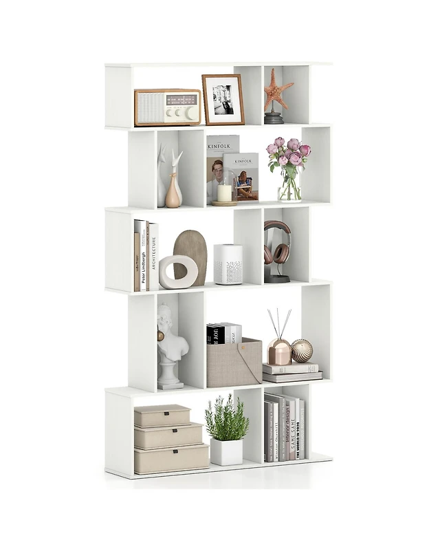 Gouun 5-Tier S-Shaped Geometric Bookshelf with Open Cubes
