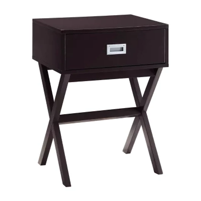 Lovmor Accent Table, End, Side Table, 2 Tier, Narrow, Bedroom, Lamp, Storage Drawer, Antique White Veneer, Brown Veneer, Transitional