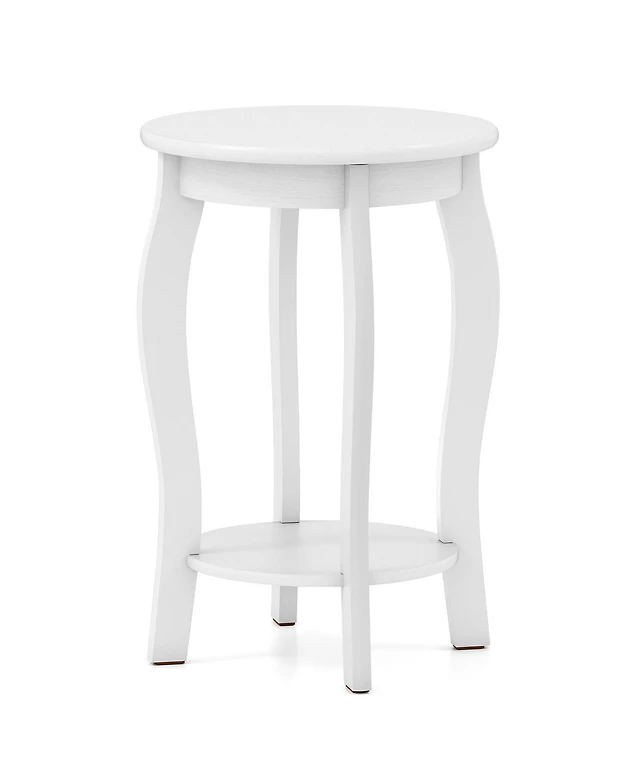 Gouun 2-Tier Solid Wood Patio Side Table with Storage Shelf