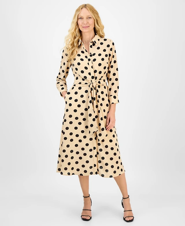 julia jordan Women's Dot-Print Tie-Waist Shirtdress