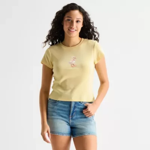 New World Santa Monica Baby Womens Juniors Crew Neck Short Sleeve Classic Fit Graphic T-Shirt