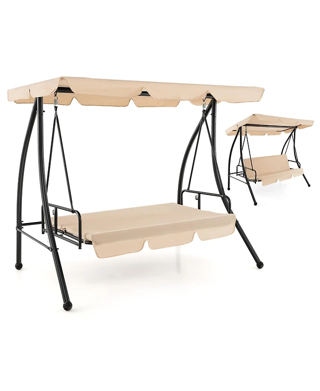 Gymax 3-Seat Outdoor Converting Patio Swing Glider Adjustable Canopy Porch