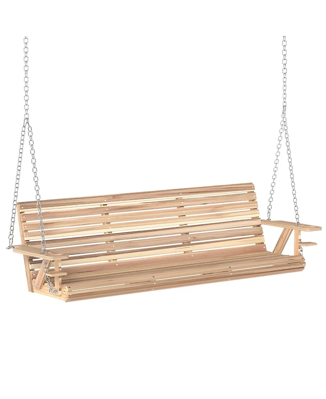 Outsunny 5 Ft Wooden Porch Swing 3-Seater with Cupholders,