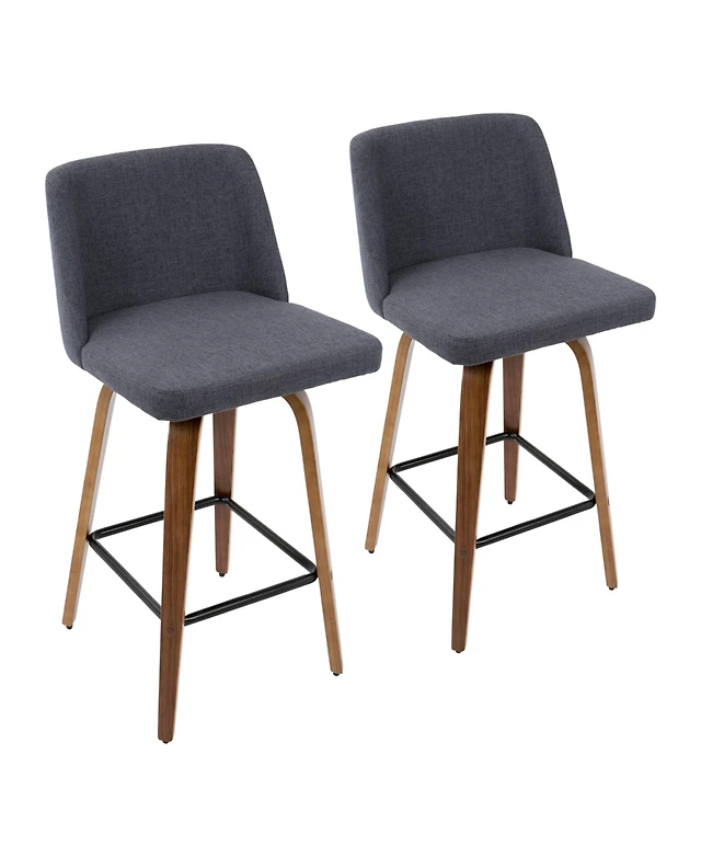 Simplie Fun Wood Upholstered Swivel Bar Stools, Set of 2, Grey