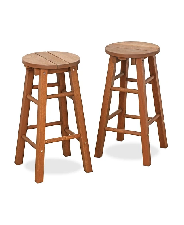 Best Choice Products Set of 2 Outdoor Acacia Wood Bar Stools Bar Chairs w/ Weather-Resistant Cushions