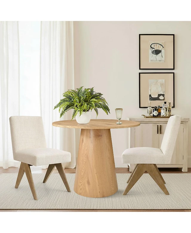 East West Furniture 3 Pc Kitchen Table Set - 1 Pedestal Table and 2 Light Beige Parson Chairs - Linen White Finish