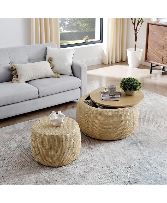Streamdale Round Waterproof Ottoman Table Tufted Storage Coffee Table with Shelf