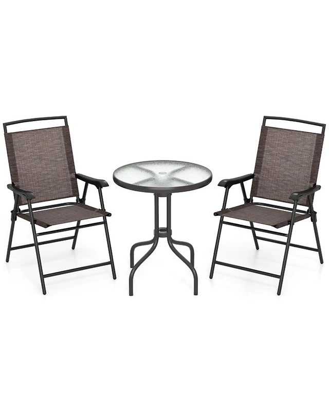 Gouun 3-Piece Patio Bistro Set with Round Tempered Glass Table and Folding Chairs