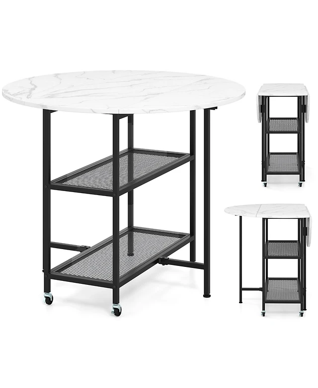 Streamdale Folding Dining Table with Storage and Cabinet, Multipurpose Space Saver