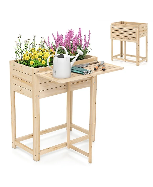Gymax Outdoor Fir Wood Bench w/ Foldable Middle Table w/ Backrest & Armrests