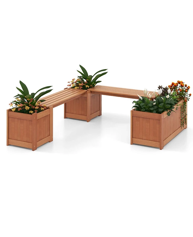 Skonyon Outdoor Raised Garden Bed Fir Wood Planter Box with Bottom Storage Shelf and Protective Liner-Brown