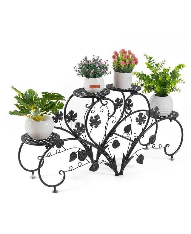Slickblue Metal Indoor/Outdoor Planter Stand with 4 Shelves for Space-Saving Plant Display