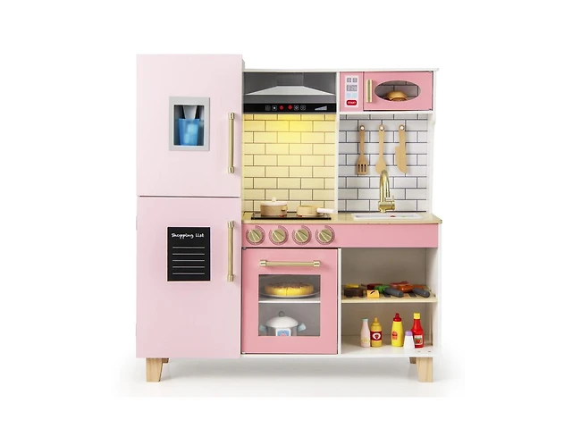 Kids Kitchen Playset Wooden Toy with Adjustable Led Lights and Washing Machine
