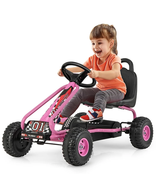 Gymax Kids Pedal Go Kart 4 Wheel Ride On Toys w/ Adjustable Seat Handbrake