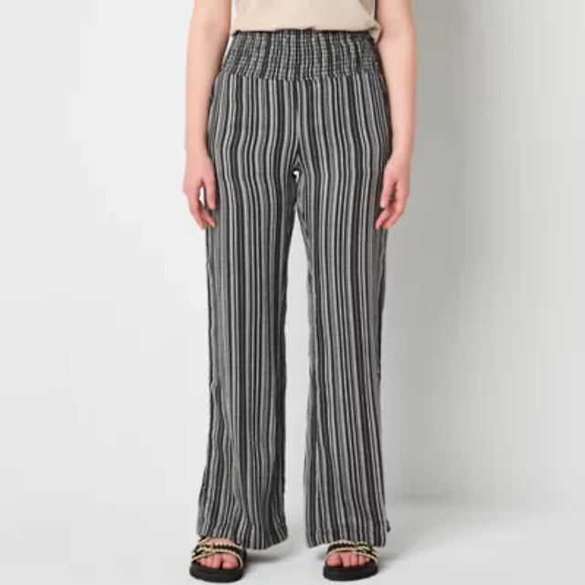 Liz Claiborne Womens Petite Wide Leg Mid Rise Pull-On Pant