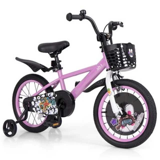 14'' Kid's Bike with Removable Training Wheels & Basket for 3-5 Years Old