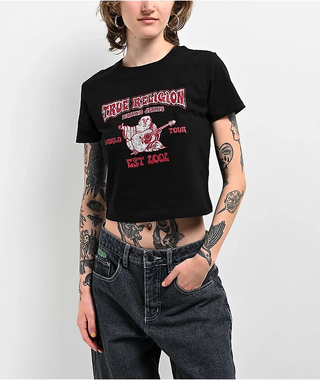 True Religion Crystal Shrunken Black Velour Zip Hoodie