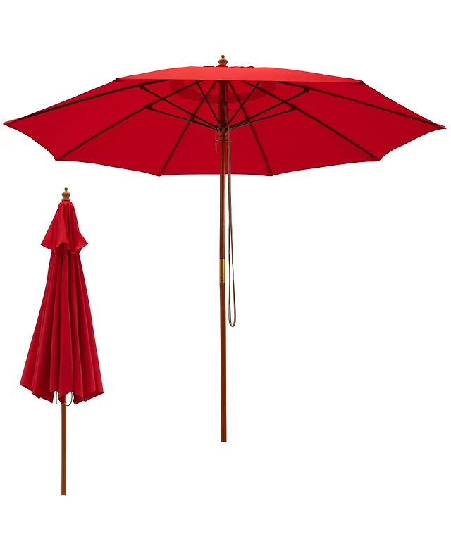 Costway 9.5 Ft Patio Rope Pulley Wooden Umbrella Market w/Fiberglass Ribs Outdoor