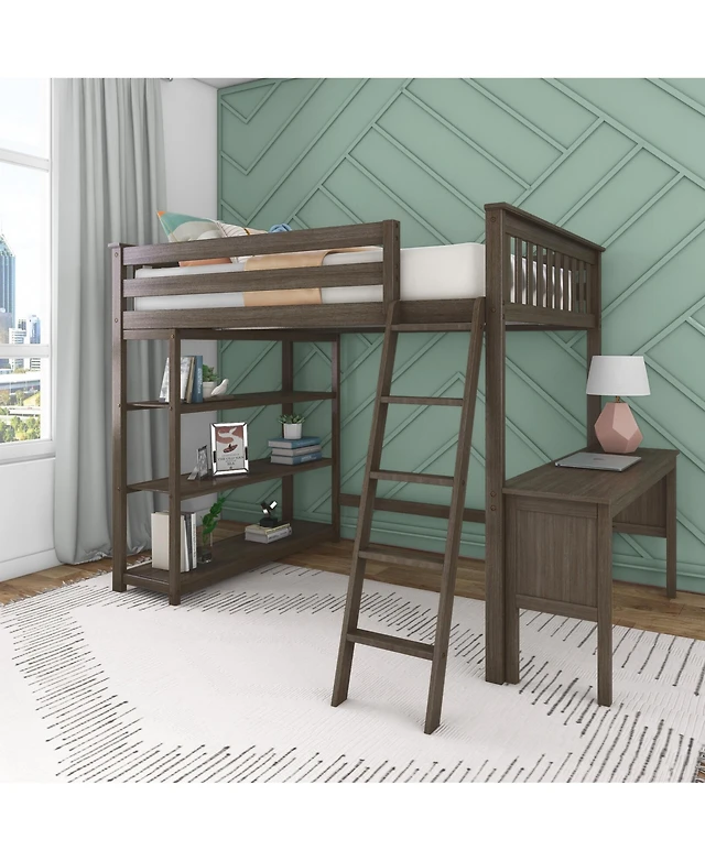 Streamdale Furniture L-Shaped Bookcase Bed with Power Outlets, Usb & Drawers - Grey