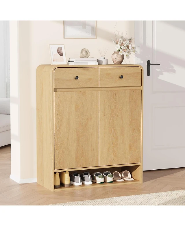 Homsee White Wooden Shoe Storage Cabinet,Fashion Shoes Cabinet with 3-Drawers