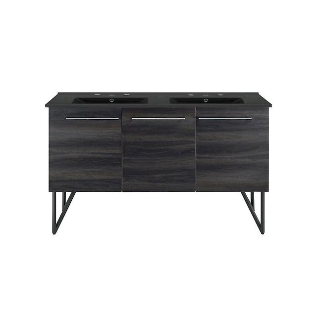Classe 48" Wall-Mounted Bathroom Vanity in Black Oak with Black Sink Top