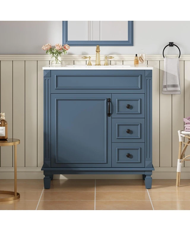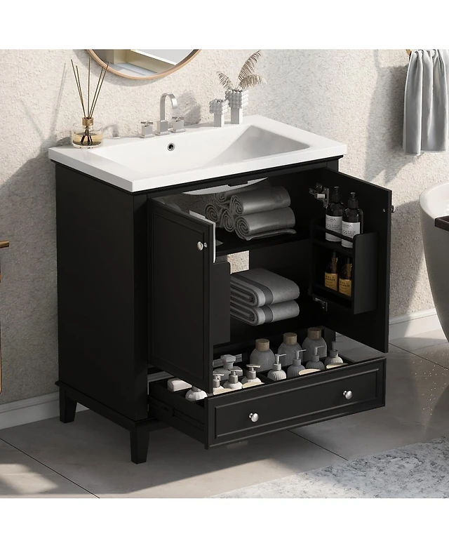 Sillysis 30" Bathroom Vanity with Ceramic Sink, Modern Storage Cabinet 2 Soft-Close Doors & Deep Drawer for Small Bathrooms