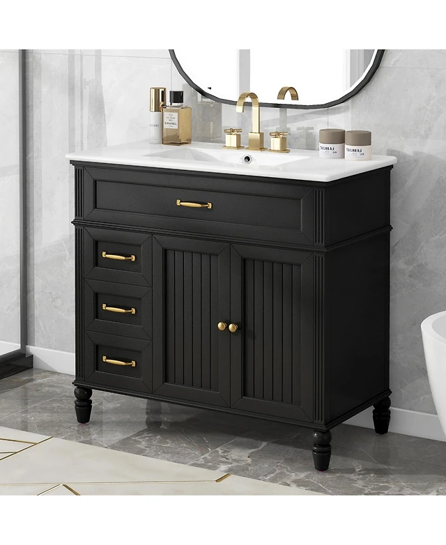 Casainc 36" Bathroom Vanity with Sink, Multi-Functional Cabinet with Doors and Drawers, Mdf Frame and Mdf Board