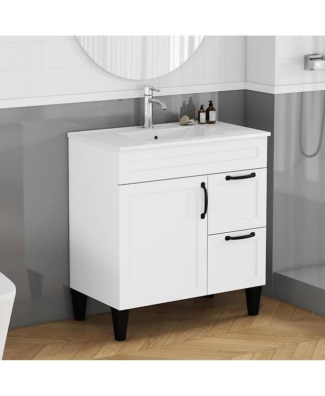Sillysis 30" Bathroom Vanity with Integrated Sink, Solid Wood & Mdf Cabinet, Adjustable Shelf, Modern Storage