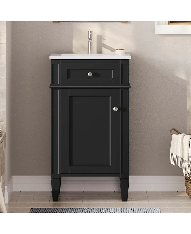 Casainc 20; Bathroom Vanity with Ceramic Sink, Soft-Close Door, U-Shaped Shelf, Drawer and Storage Rack