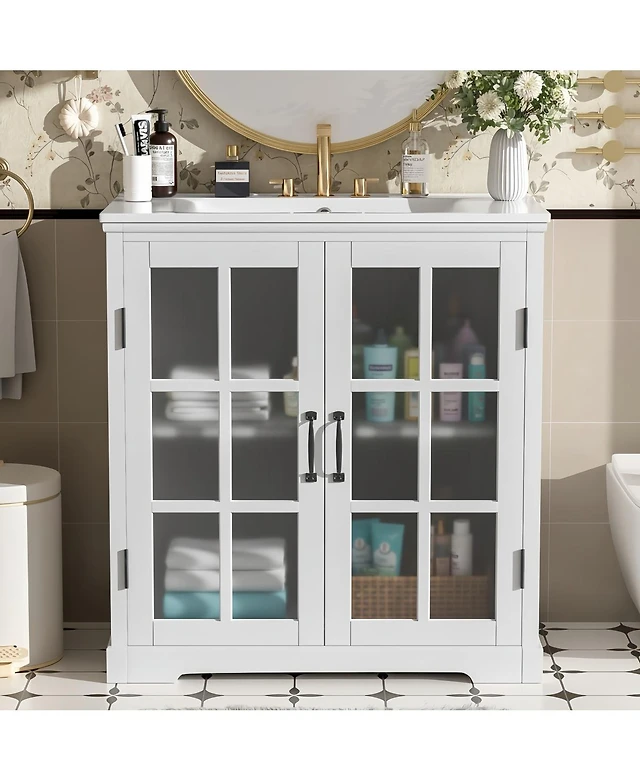 Sillysis 30" Bathroom Vanity with Ceramic Sink, Soft Close Doors & Adjustable Shelf, Modern Storage Cabinet for Small Spaces