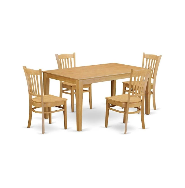 East West Furniture 5 Piece Dining Room Table Set - Oak Modern Dining Table and 4 Oak Linen Fabric Dining Room Chairs with Slatted Back - Oak Finish