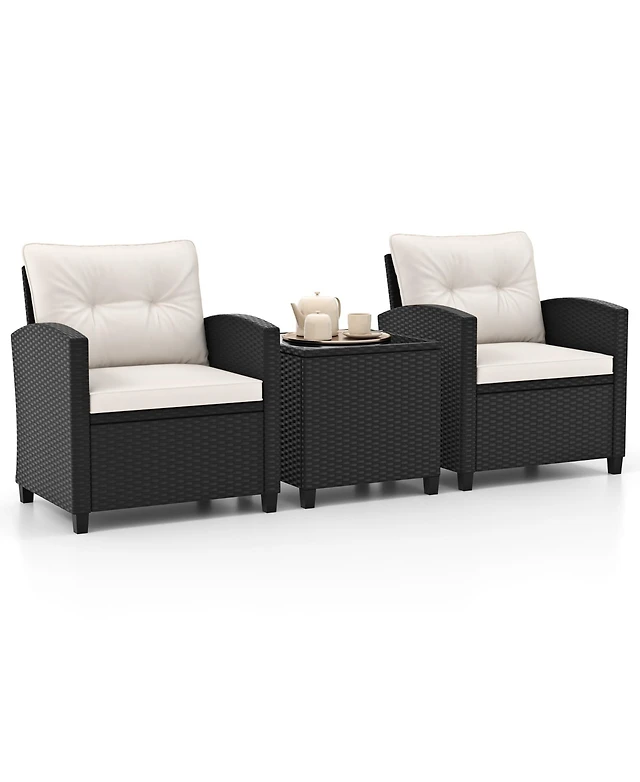 4PCS Patio Rattan Conversation Furniture Set Cushioned Seat Glass Table