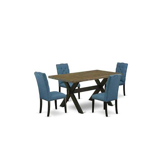 5 Pieces Dining Table Set with 4 Chairs and Backrests