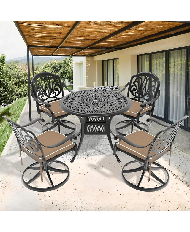 Gymax Dining Set for 4 Folding Chairs & Dining Table Set w/ Umbrella Hole Patio