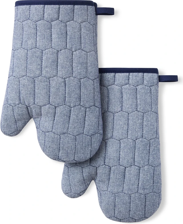Martha Stewart Honeycomb Quilted Chambray Oven Mitt Set, 7" x 13"